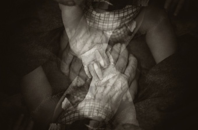 I watch my grandmother age backward. Black finds its way into her brittle grey ends and seeps upward, her hair growing fuller, hiding the speckled patches of her scalp. Her skin smooths and thickens; no more bruises and purple-pinched veins. She leaves indents in the armrests when she pushes out of her wheelchair. When the window won’t open she breaks the glass with her IV stand. It’s a four-story fall to the ground, but she pilots her hospital gown like a wingsuit, gliding down in slow, shrinking circles. She lands in a roll that turns into a crawl. It feels like it all happens in a blink; her hair is short again, dark wisps on her young head, and her hands and knees must be so soft, must be burning on the hot sidewalk. A woman walking out of the fertility clinic spots my grandmother, all alone in the hospital courtyard, and rushes over. She picks my grandmother up, wrapping her in the hospital gown turned wingsuit turned swaddling blanket. The woman looks around in confusion, left, right, then up. I pull away from the window. When no one appears, the woman holds her tighter and sniffs, inhaling the scent of her newborn skin, fighting off her own tears. It must tickle; my grandmother laughs. I’m still hidden out of sight, but through the broken glass I can still see her: a thousand fractal versions of her, the courtyard, the blanket, the hospital room, the woman, myself. I see the woman’s confusion turn to wonder to determination and, after a moment of hesitation, she sprints toward the parking garage. I lean out back out the window to watch her run. From over the woman’s shoulder, my grandmother takes her thumb out of her mouth to wave goodbye.